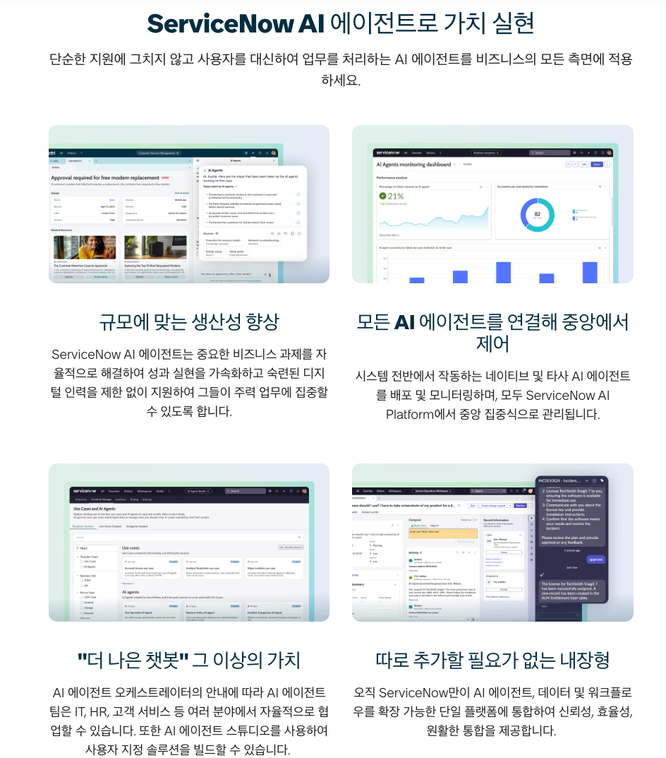 두 회사의 AI 솔루션 모두 강력하지만, 서비스나우는 결정적인 차별점을 가집니다.