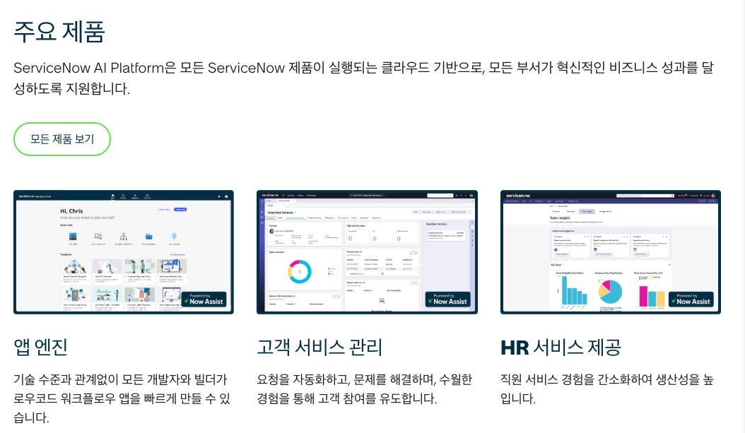 - 서비스나우 (Inside-Out 전략): 기업 내부의 백오피스 워크플로우(IT, HR 등)를 완벽하게 장악한 후, 이를 기반으로 고객 대면 애플리케이션으로 확장하는 전략을 구사합니다. 이들의 강점은 부서를 넘나드는 깊이 있는 프로세스 자동화에 있습니다.